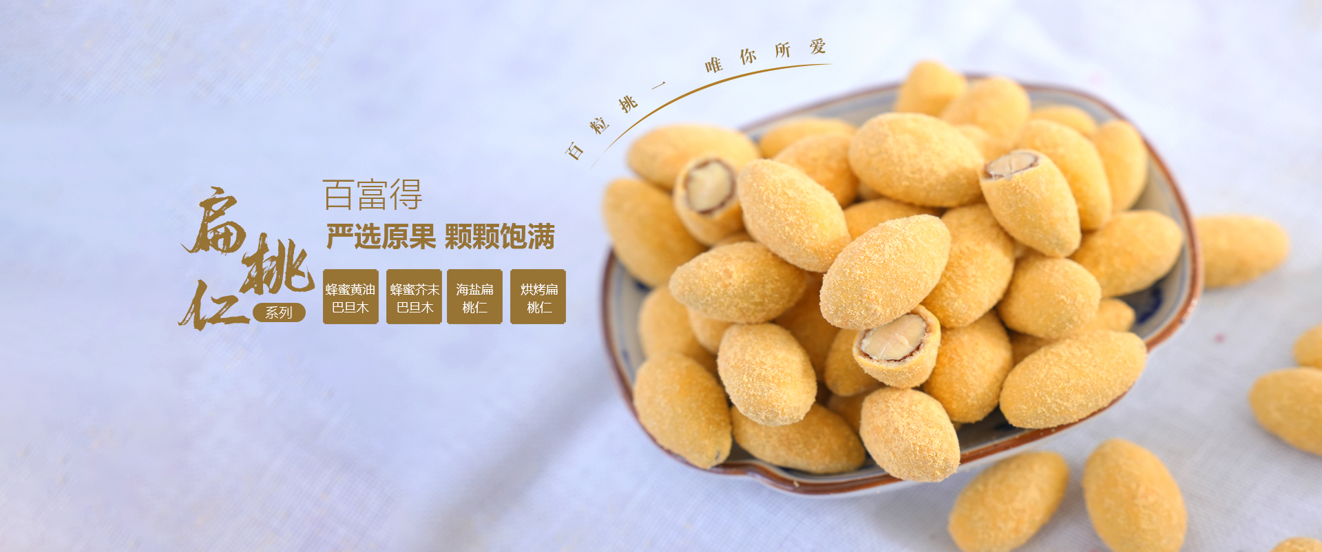威海百富得食品有限公司成立于2000年,是一家及研發(fā)、生產(chǎn)和銷售于一體的堅(jiān)果制品深加工企業(yè)。經(jīng)過二十多年的發(fā)展,公司建立了一整套完善的科技創(chuàng)新體系,質(zhì)量保證體系和市場(chǎng)營(yíng)銷體系. 公司致力于堅(jiān)果制品的創(chuàng)新研發(fā),融合國(guó)內(nèi)外飲食文化,在非油炸、輕烘焙基礎(chǔ)上研發(fā)了系列健康、美味、營(yíng)養(yǎng)的特色產(chǎn)品,只為給消費(fèi)者提供優(yōu)質(zhì),健康的美食享受。 主要為巴旦木、夏威夷果仁、花生及腰果四個(gè)系列多種口味堅(jiān)果制品。
